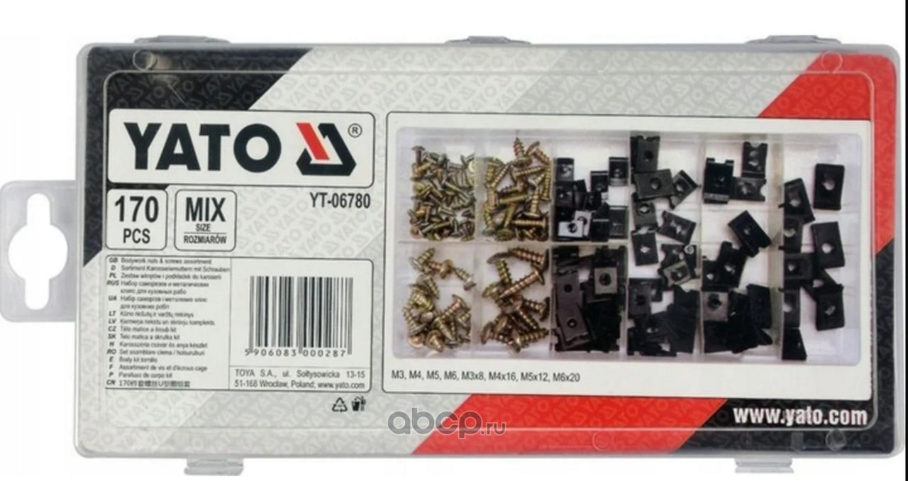 | YATO | YT06780 | Набор метизов 170 пр, саморезы, шайбы/клипсы прямоугольные | ||