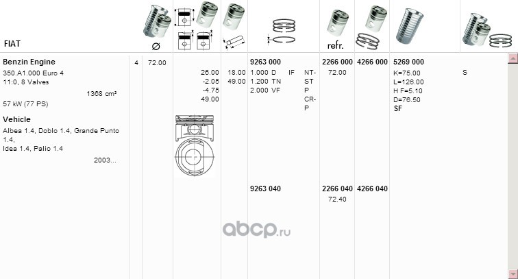 | YENMAK | 4266040 | Ø72,40 Поршень с кольцами + палец | ||
