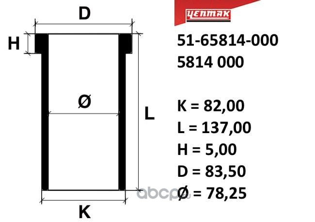 | YENMAK | 5165814000 | 79,00 mm Гильза K=82, L=137, H=5, D=83,5 | ||