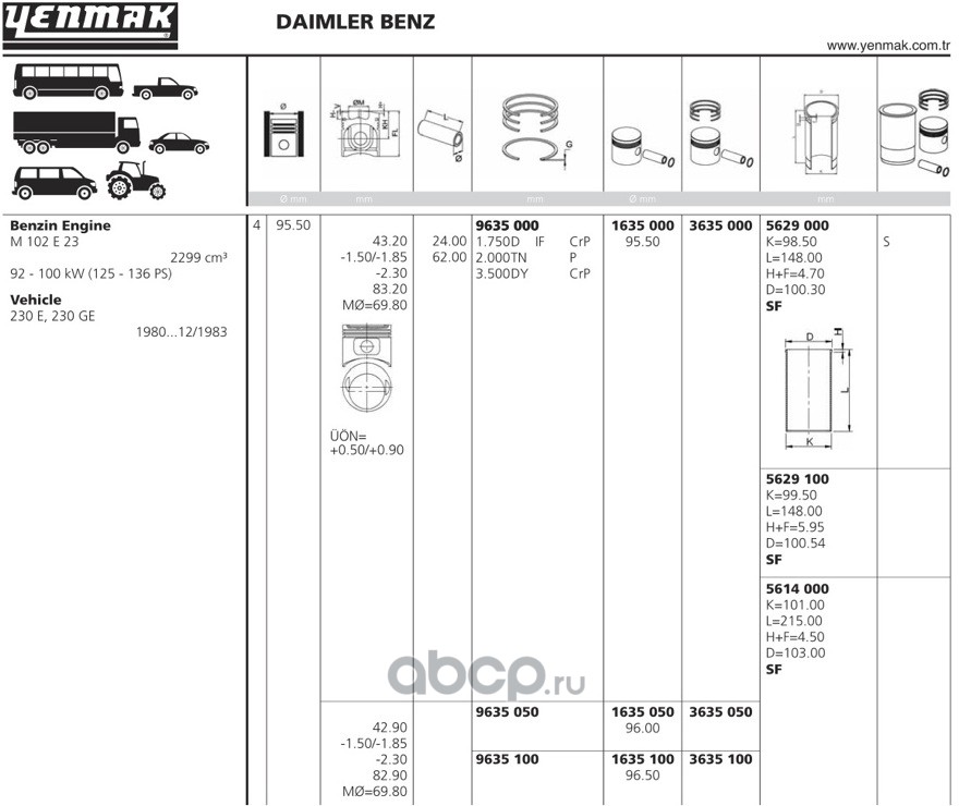 | YENMAK | 1635100 | Поршень + палец без колец Ø96.5, 1 | ||