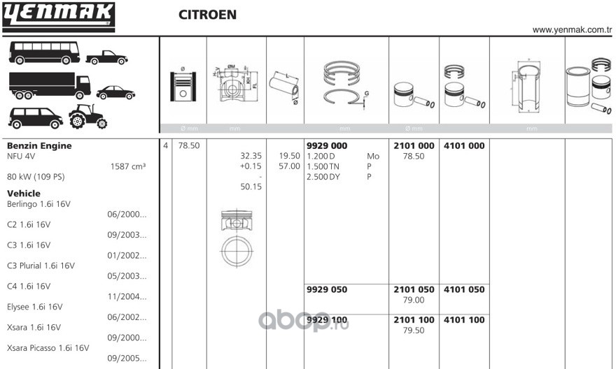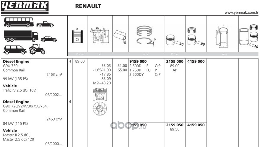 | YENMAK | 4159050 | Ø89,50 Поршень с кольцами + палец | ||