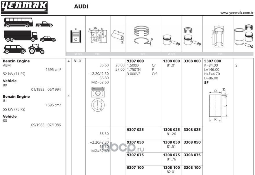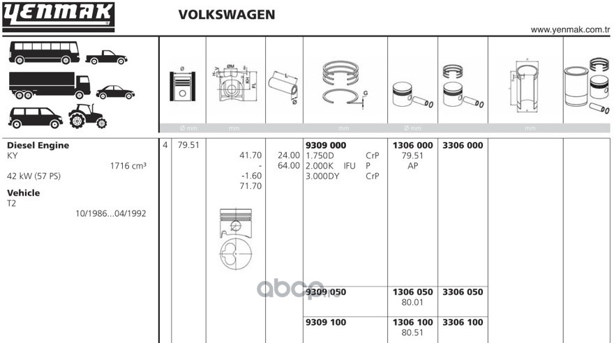 | YENMAK | 1306050 | Поршень + палец без колец Ø80.01, 0.5 | ||