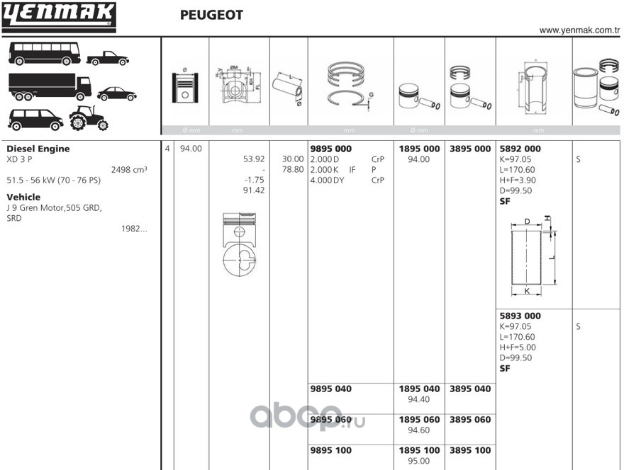 | YENMAK | 1895000 | Поршень + палец без колец Ø94, STD | ||