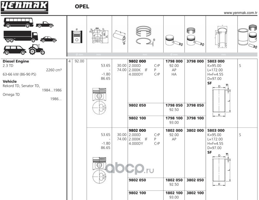 | YENMAK | 3802050 | Поршень с кольцами Ø92.5, 0.5 | ||