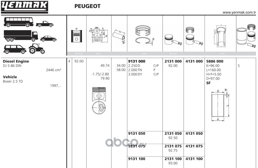 | YENMAK | 2131000 | Поршень + палец без колец Ø92, STD |