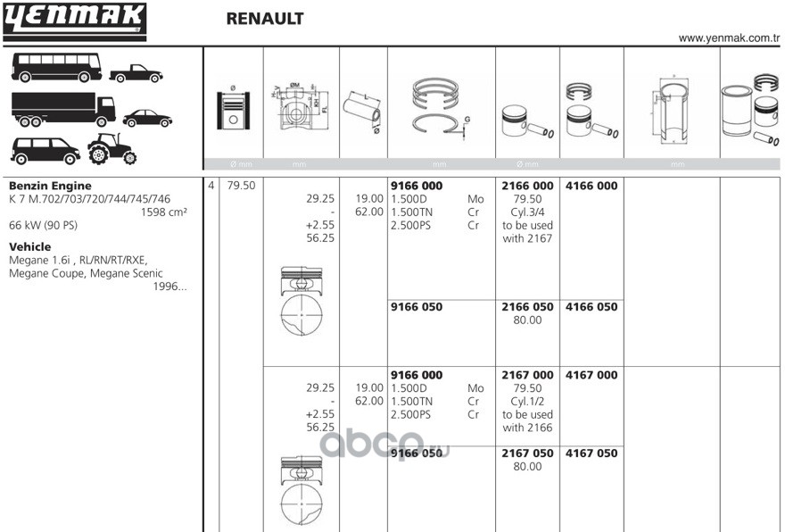 | YENMAK | 4166000 | Ø79,50 STD Поршень с кольцами + палец 1/2 цилиндры | ||
