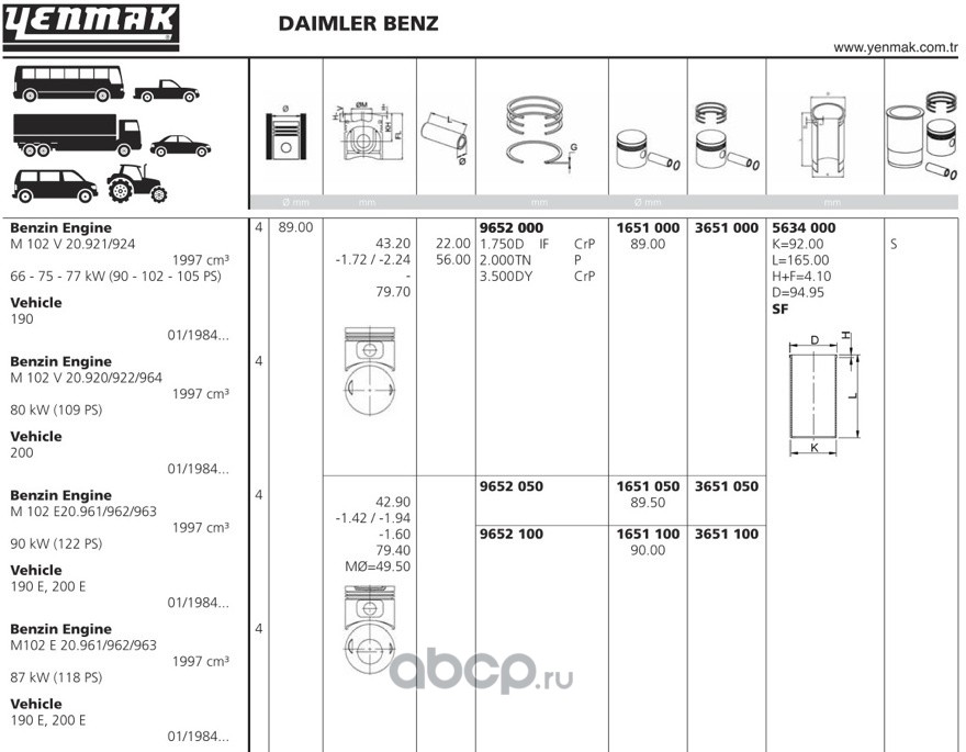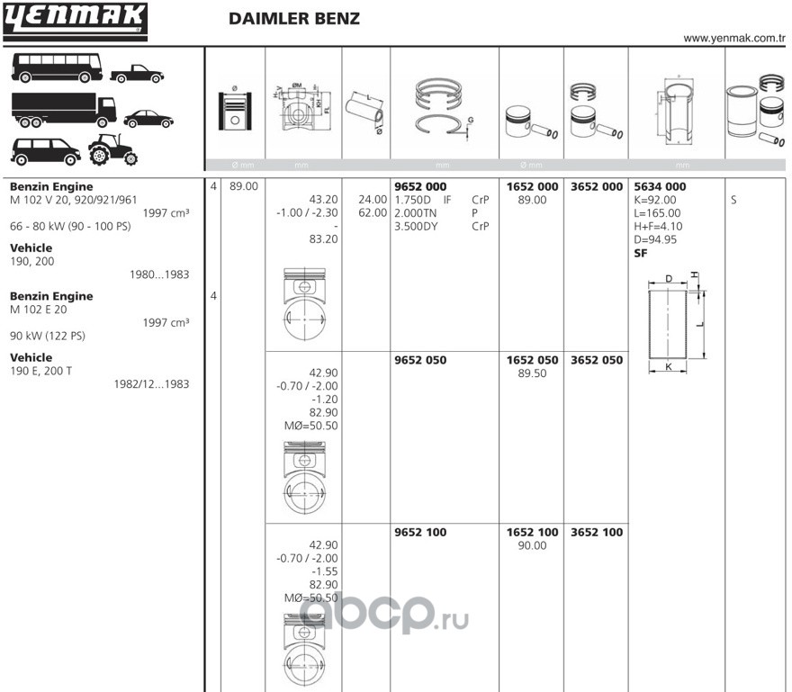 | YENMAK | 1652050 | Ø89,50 Поршень + палец без колец | ||