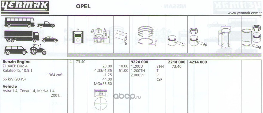 | YENMAK | 4214000 | Поршень с кольцами Ø73.4, STD | ||