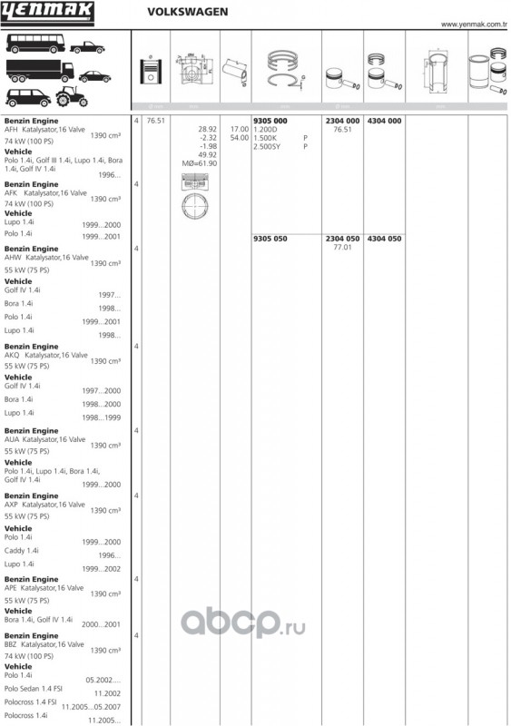 | YENMAK | 4304000 | Ø76,50 STD Поршень с кольцами + палец | ||