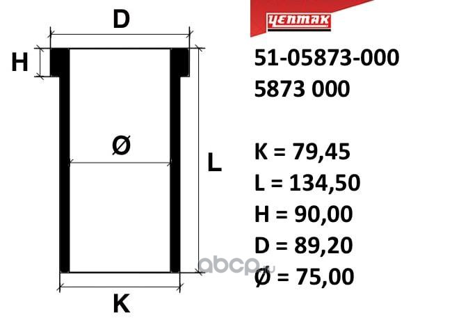 | YENMAK | 5105873000 | 75,00 mm. Гильза К=79,45, L=134,5, H=90, D=89,2 | ||