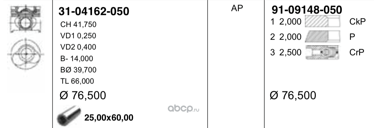 | YENMAK | 3104162050 | 76,50 mm. Порш.+палец,с кольцами | ||