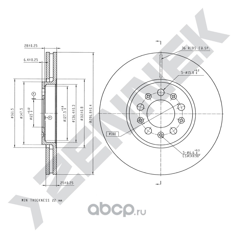 | ZENNEK | DBD0033 | Диск томозной передний | ||