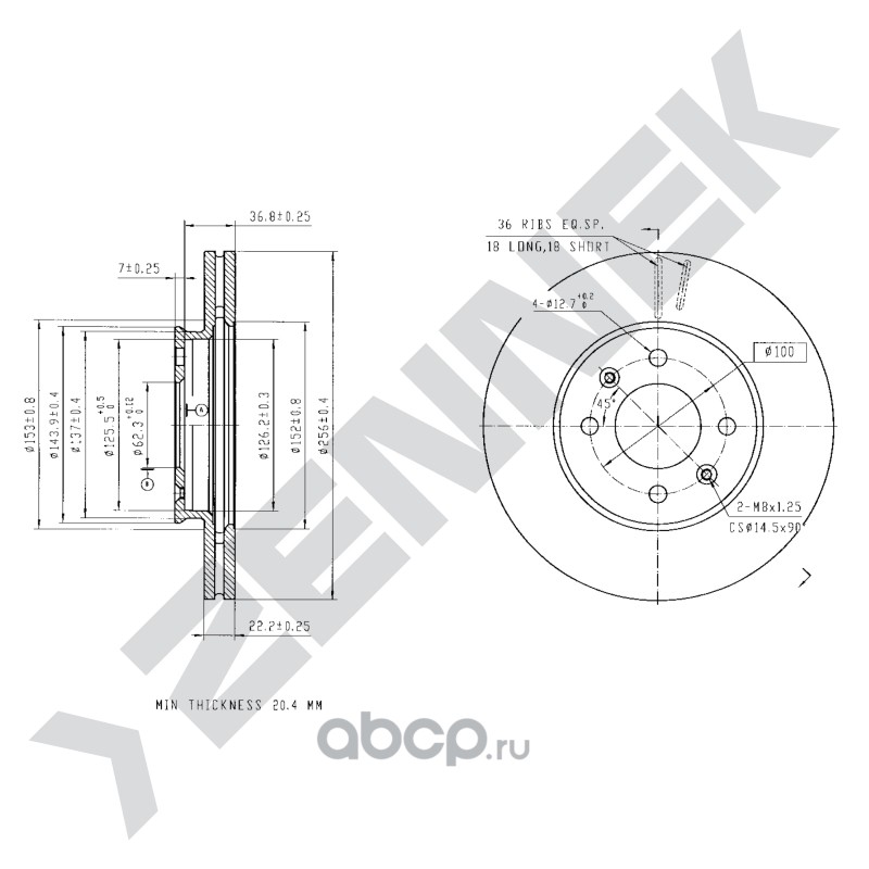 | ZENNEK | DBD0152 | Диск томозной передний | ||