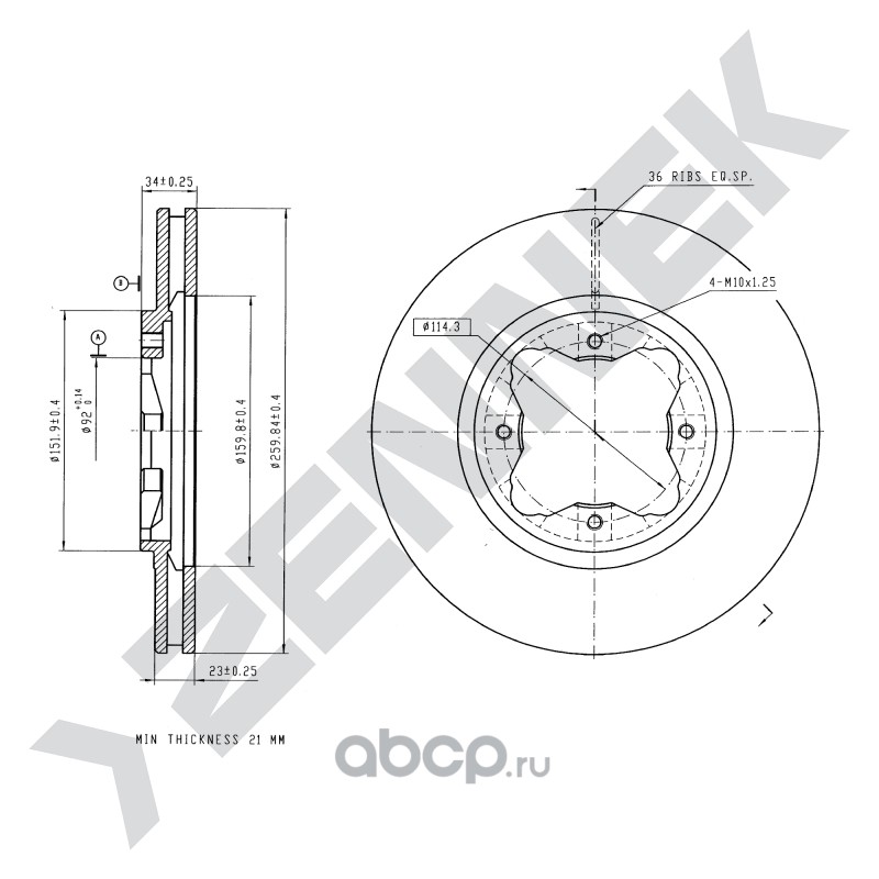 | ZENNEK | DBD0210 | Диск томозной передний | ||