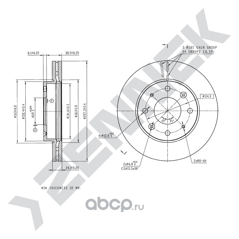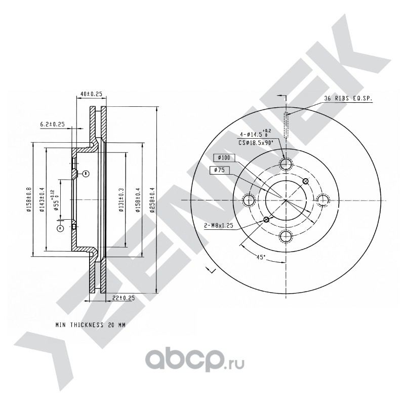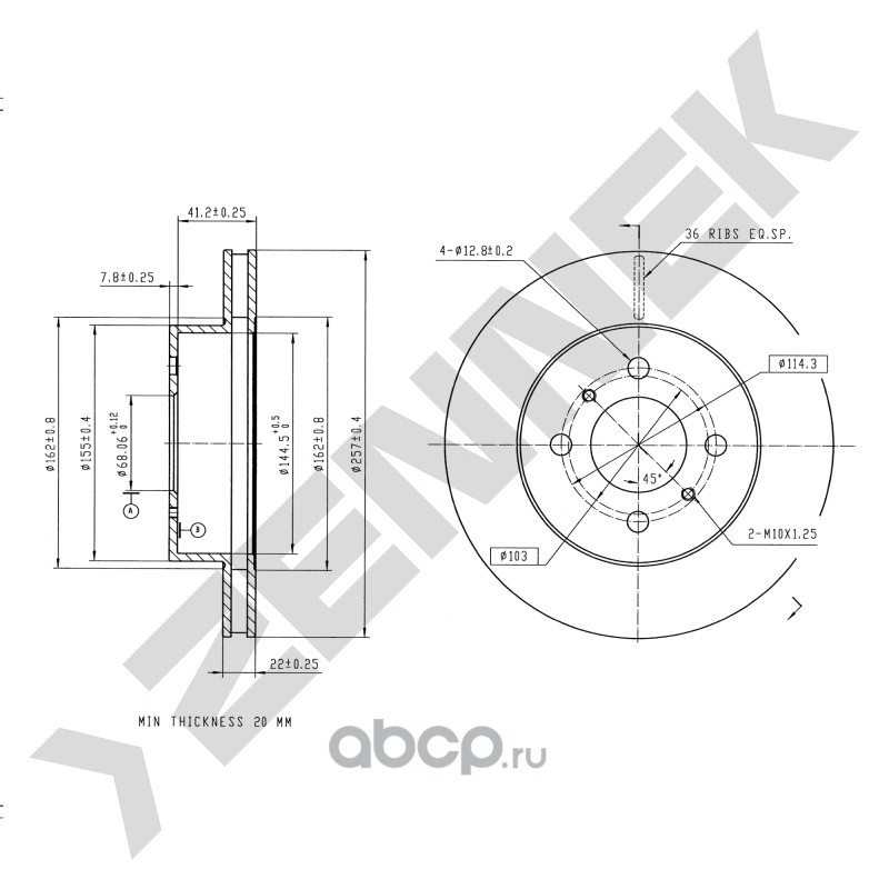 | ZENNEK | DBD0208 | Диск томозной передний | ||