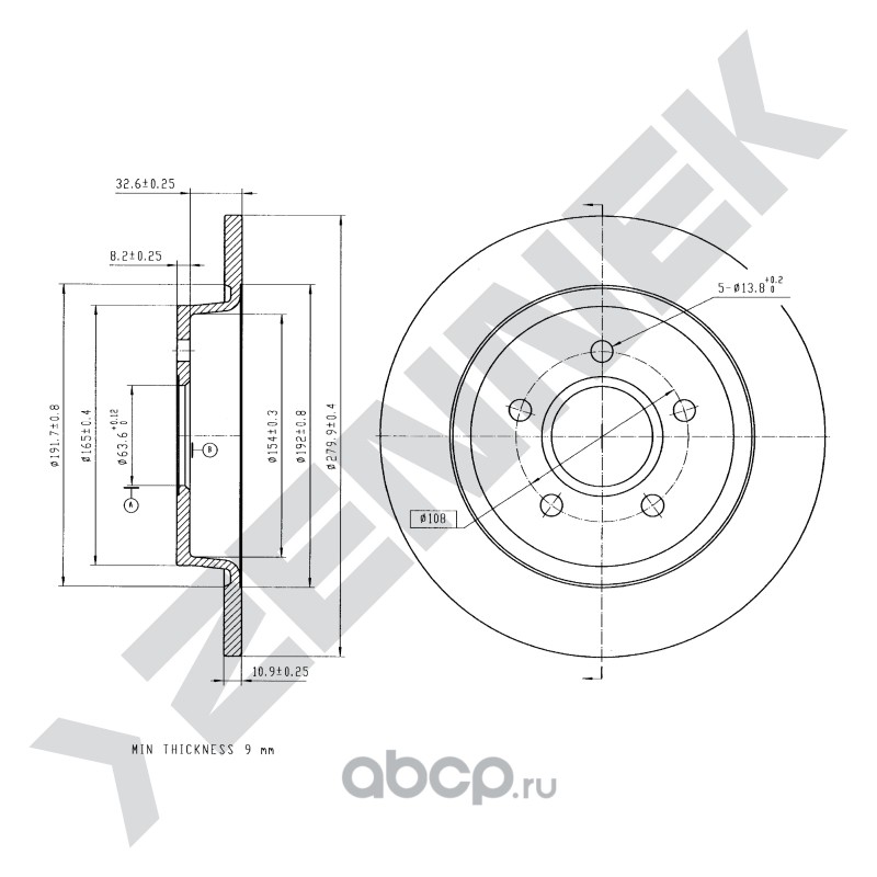 | ZENNEK | DBD0179 | Диск томозной задний | ||
