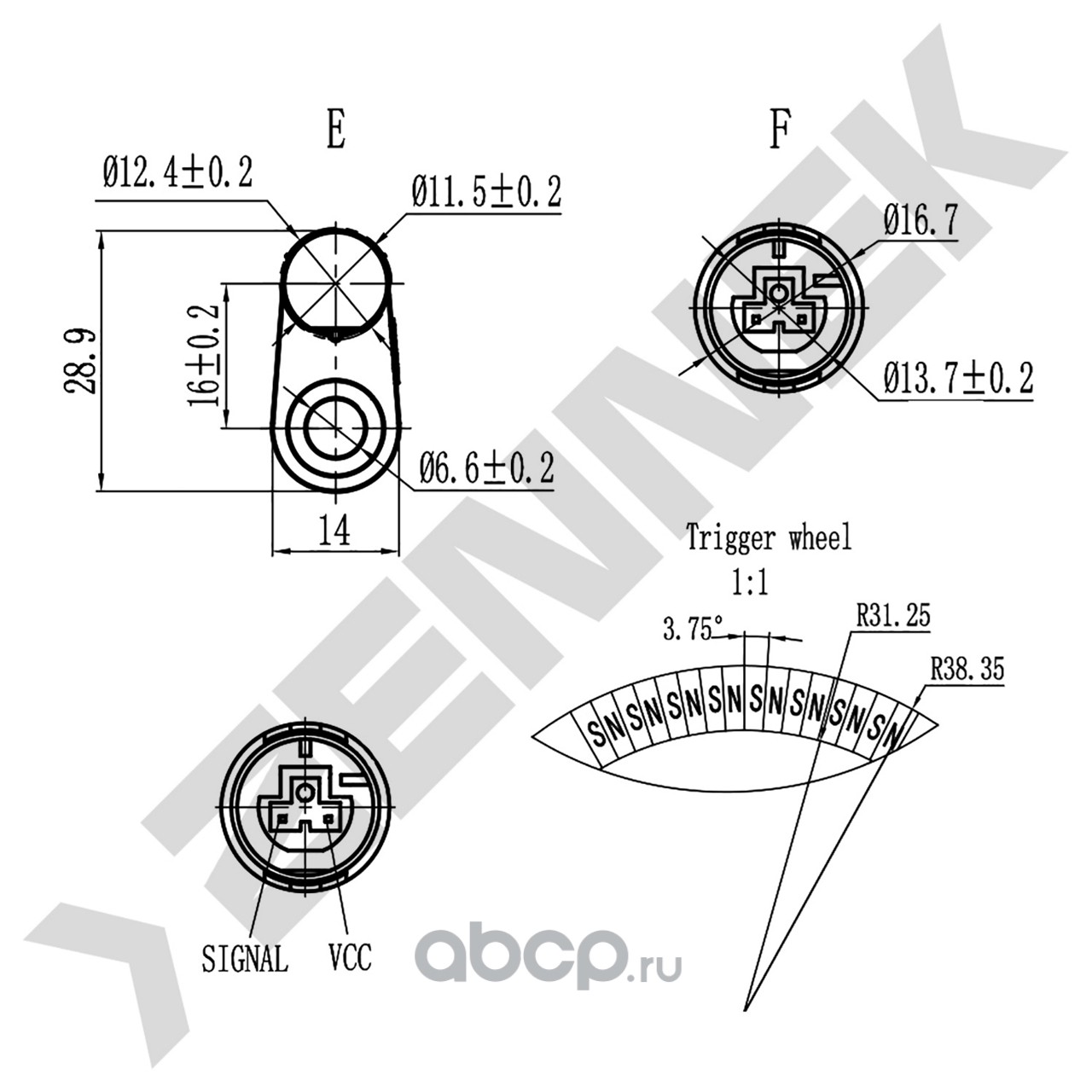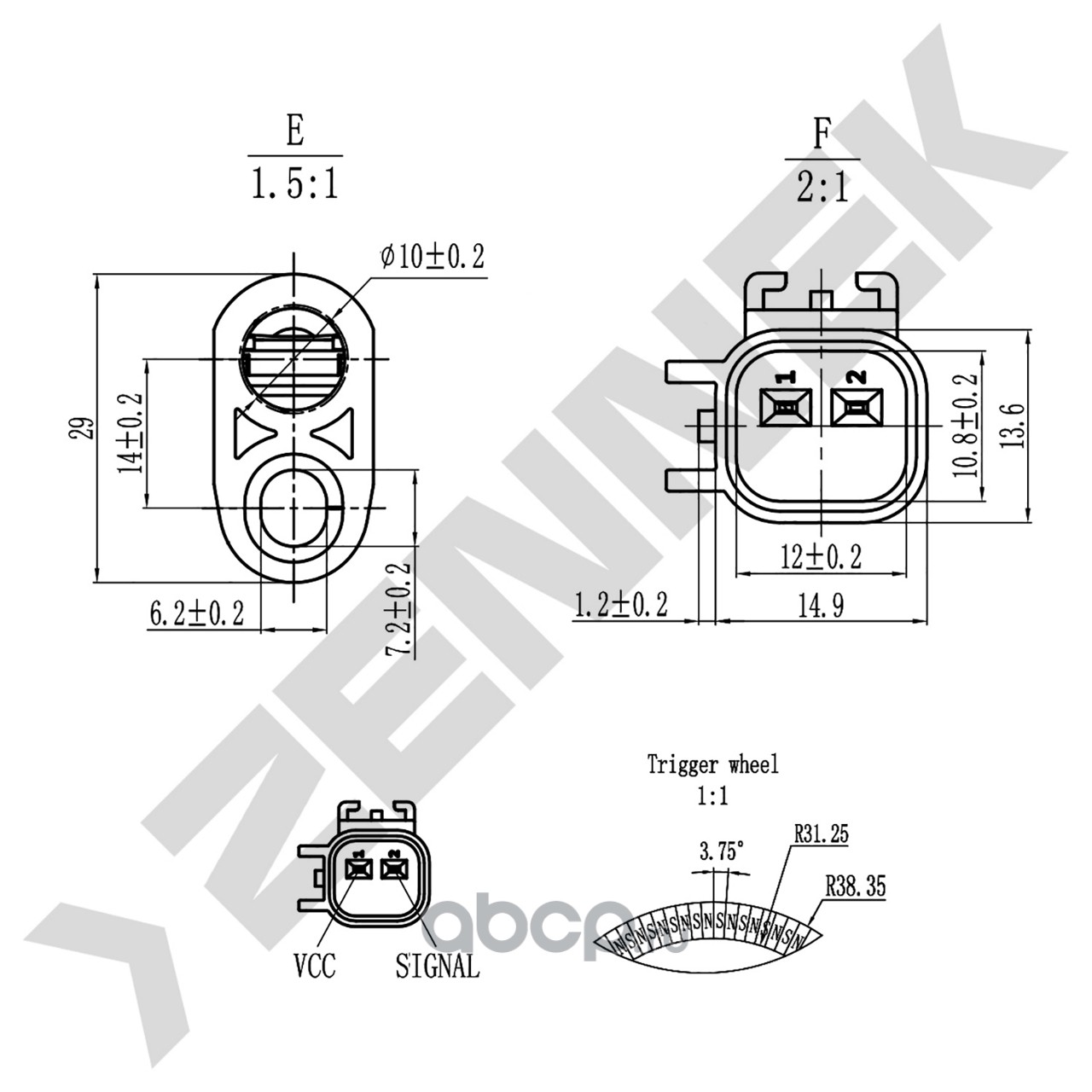 | ZENNEK | DAS0302 | Датчик ABS задний | ||