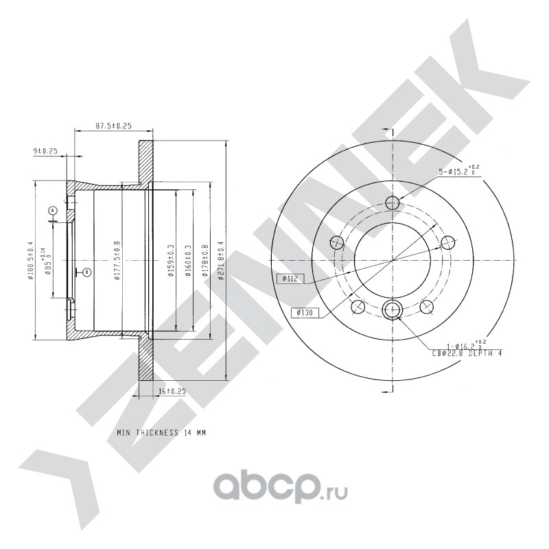 | ZENNEK | DBD0175 | Диск томозной передний | ||