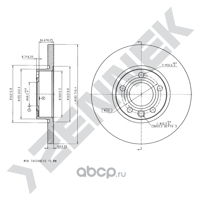 | ZENNEK | DBD0284 | Диск тормозной задний | ||