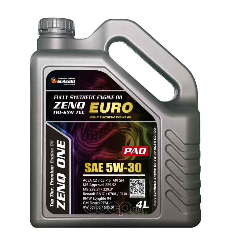 | ZENQ | 339427 | Масло моторное синтетика ZENQ ONE EURO 5W-30 4 л. | ||