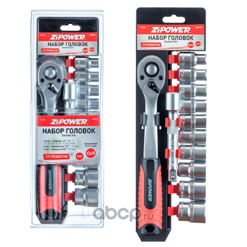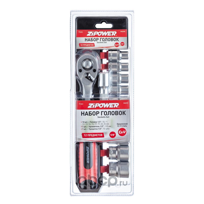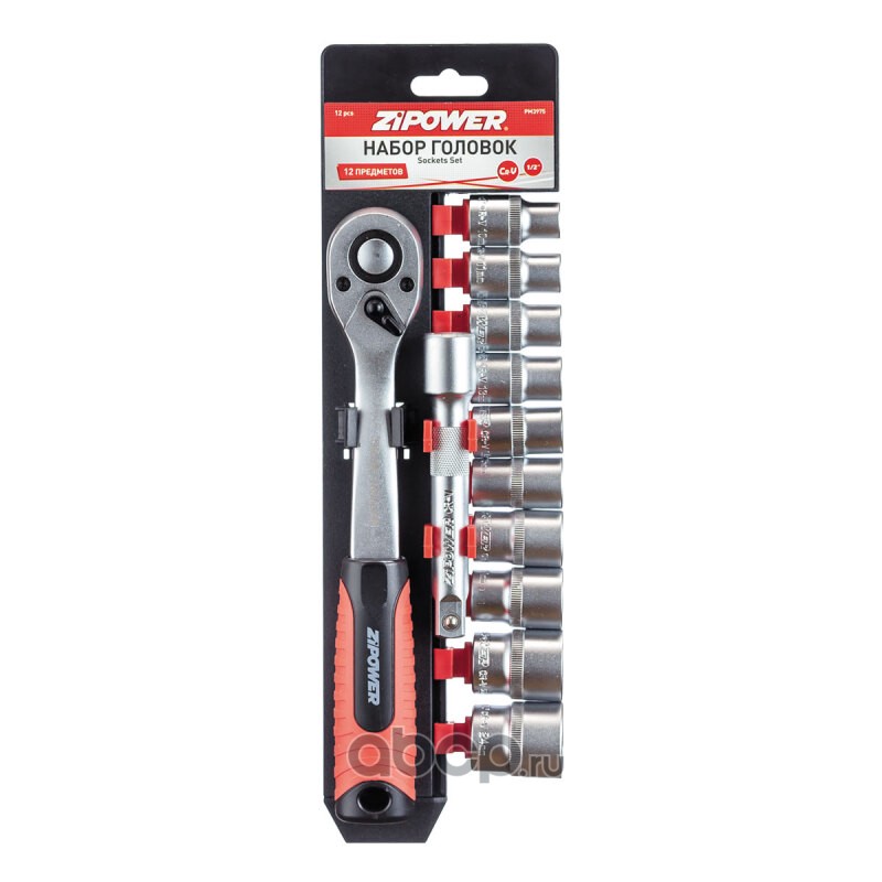 Набор головок с трещоткой 1/2", хром-ванадий, 12 шт.