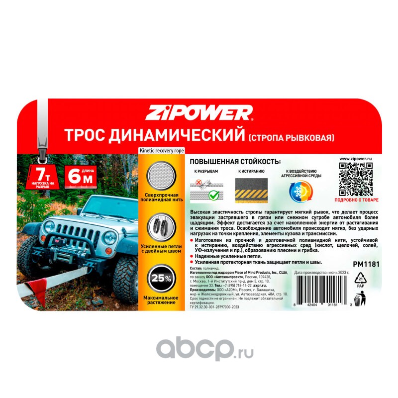 ТРОС ДИНАМИЧЕСКИЙ (СТРОПА РЫВКОВАЯ), 6 М, 7 Т, ПОЛИАМИД