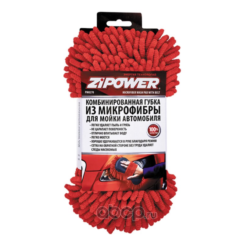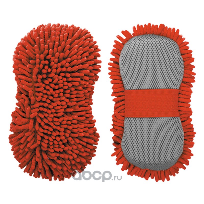 Комбинированная губка из микрофибры для мойки автомобиля с сеткой и ремнем, красная, 24х12 см