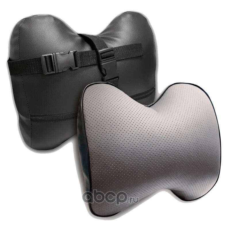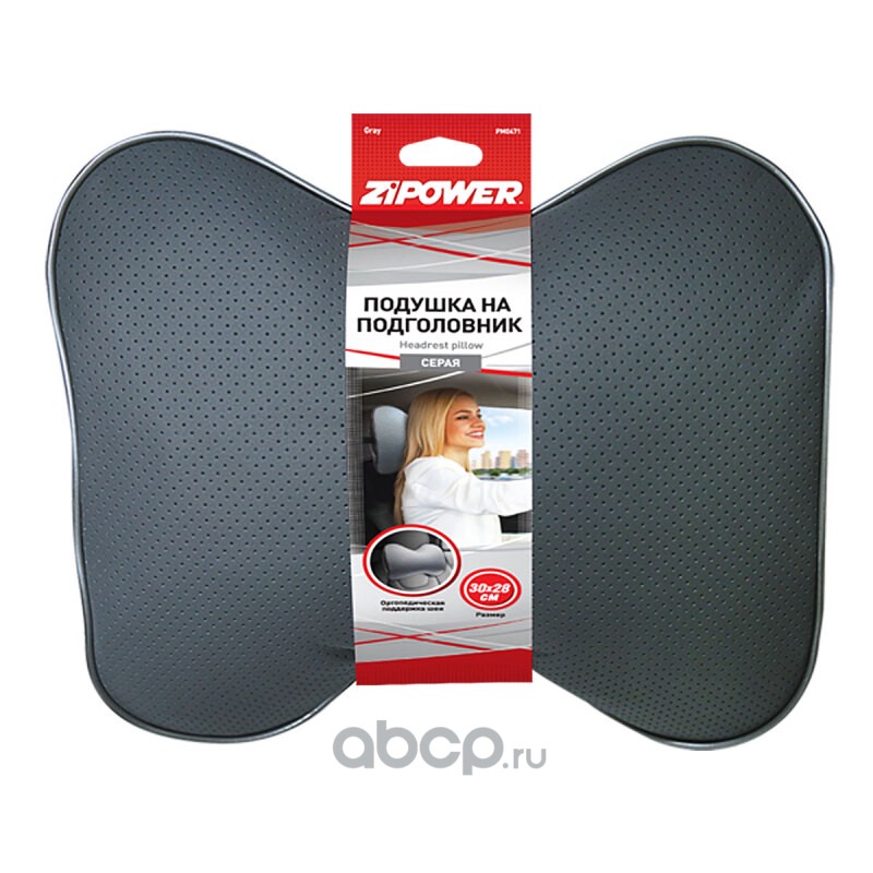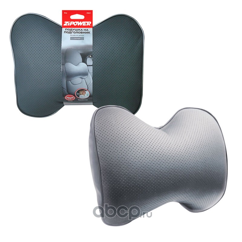 ZiPOWER PM0471 Подушка на подголовник, серая, 30x28 см, экокожа, холлофайбер