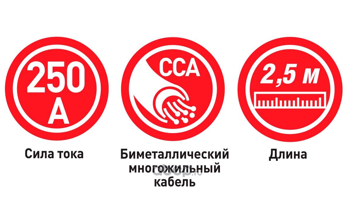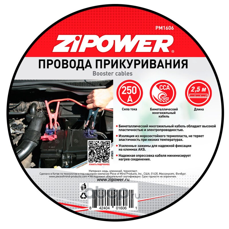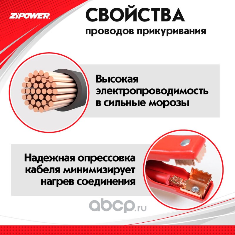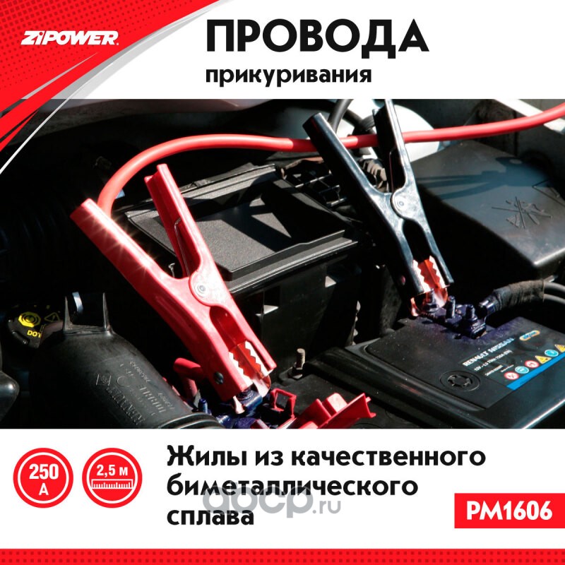 ZiPOWER PM1606 Провода прикуривания, 250 А, 2,5 м, 8 мм2, биметаллические