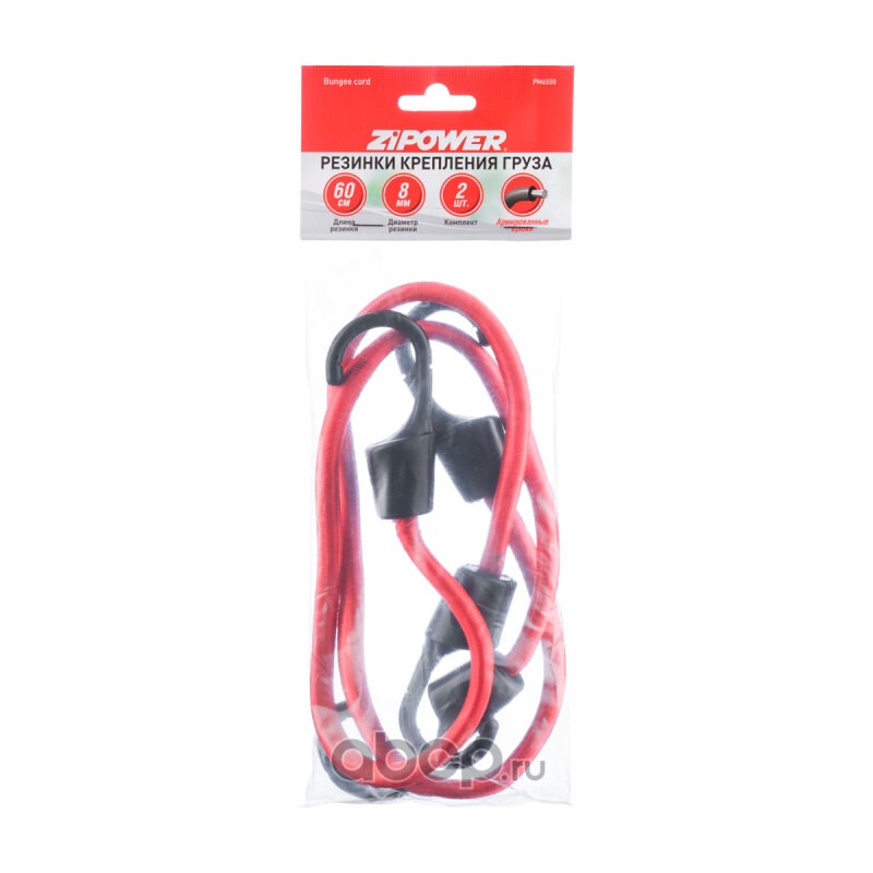ZiPOWER PM6550 Резинки крепления груза, 60 см, диам. 8 мм, 2 шт.