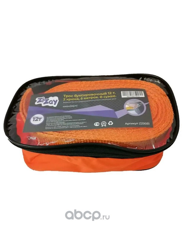 | ZiZay | ZZ0051 | Трос буксировочный 12 тонн 2 крюка 5 метров ширина 75 мм в сумке |