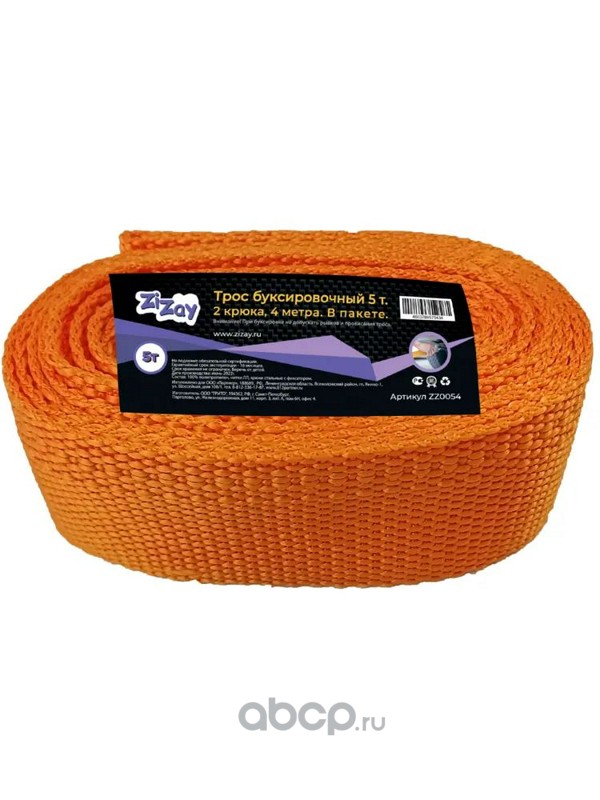| ZiZay | ZZ0054 | Трос буксировочный 5 тонн 2 крюка 4 метра ширина 50 мм в пакете | ||