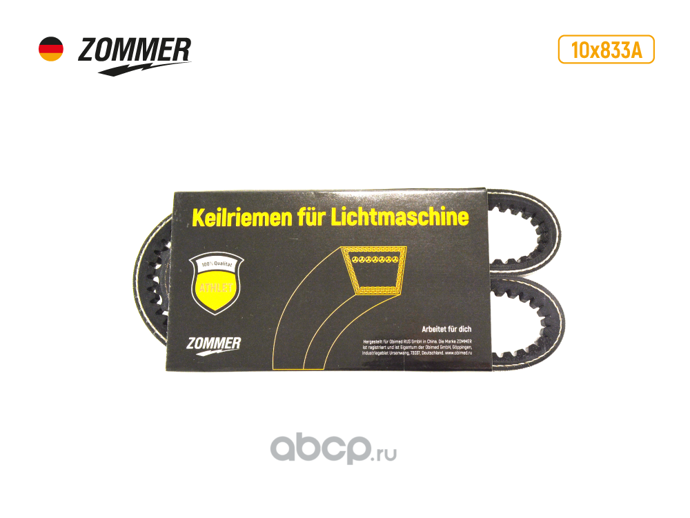 Ремень 833 генератора ГАЗ-53,3307,УМЗ-451 (AVX10) зубч усил ATHLET ZOMMER