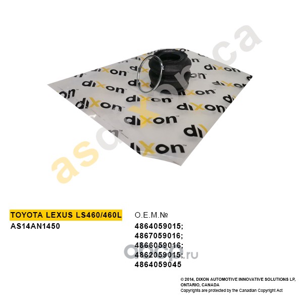 | a.s.dixon | AS14AN1450 | Пыльник опоры шаровой нижнего рычага LEXUS LS460/460L | ||
