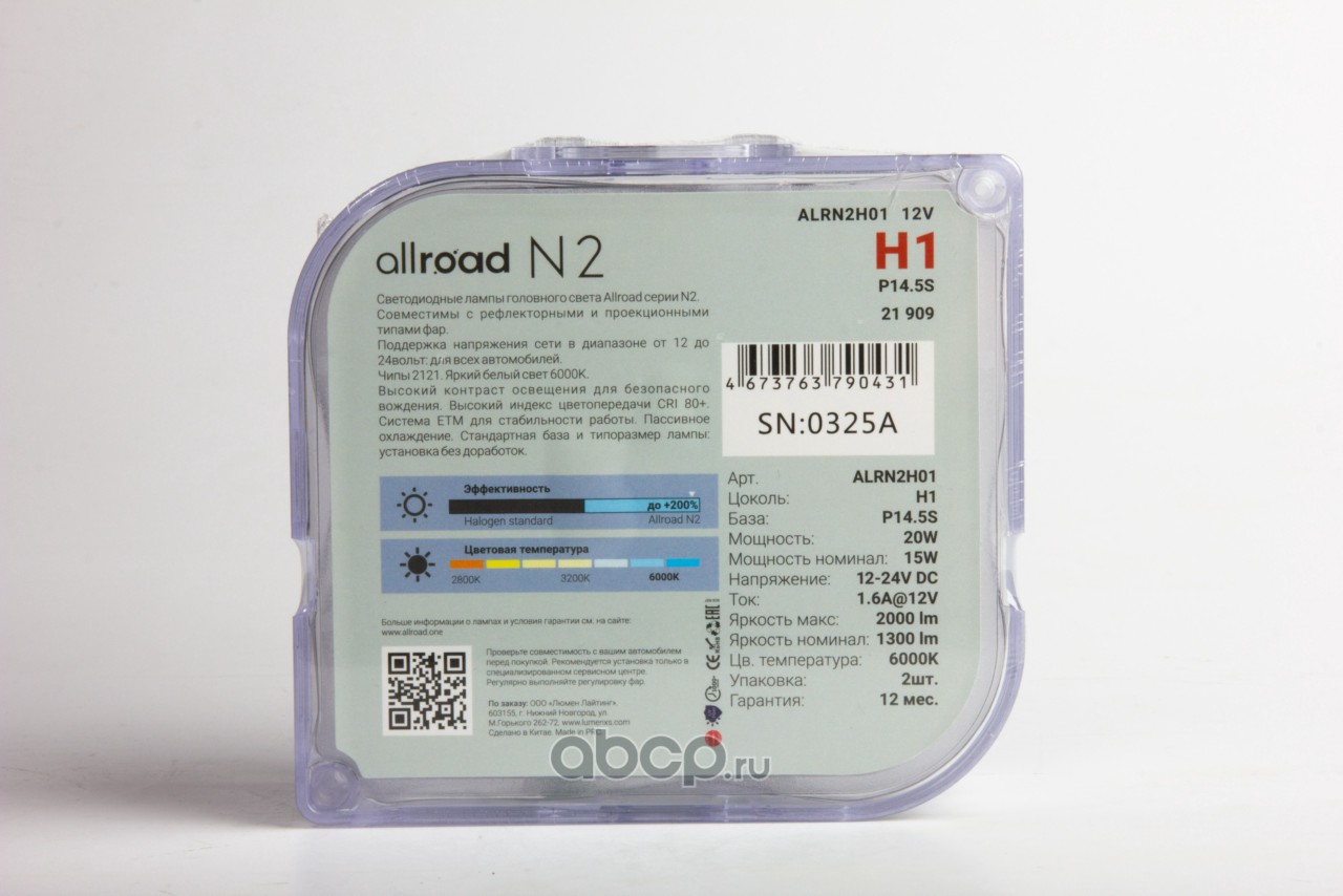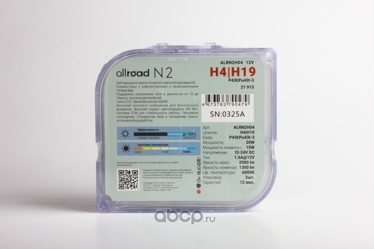 Лампа Светодиодная Allroad H4 P43t 12,24V 20W 6000 1шт