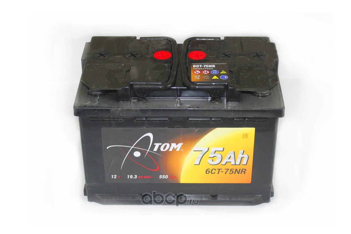 | atom | 6СТ75NR | Батарея аккумуляторная 75А/ч 550А обратная полярн. стандартные (Европа) клеммы | ||