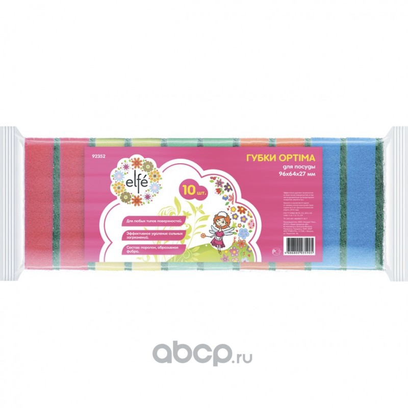 Губки для посуды Optima, 96 х 64 х 27 мм, 10 шт, Россия Elfe