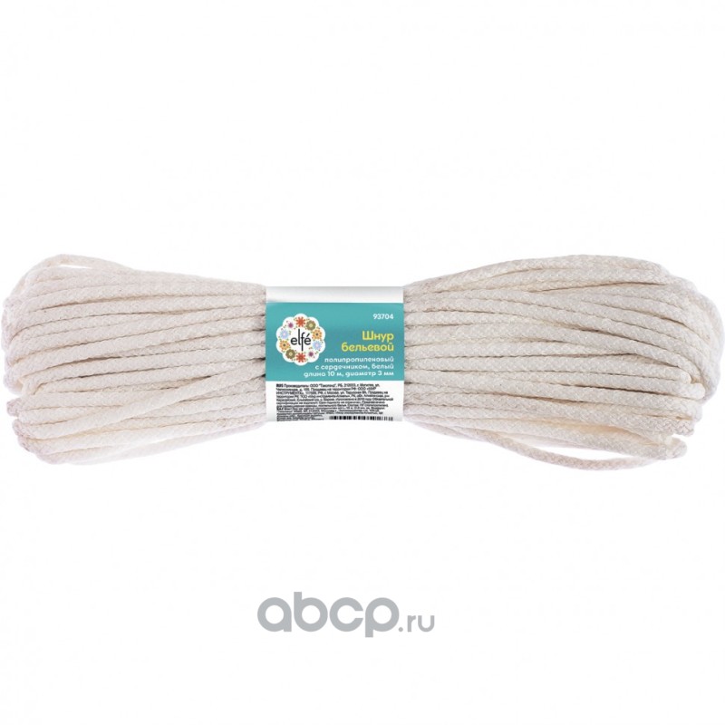 Шнур бельевой, полипропиленовый с сердечником D 3 мм, L-15 м, белый Elfe