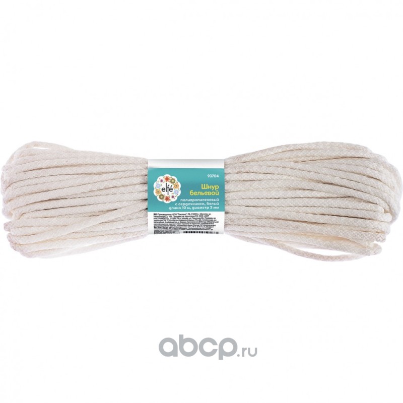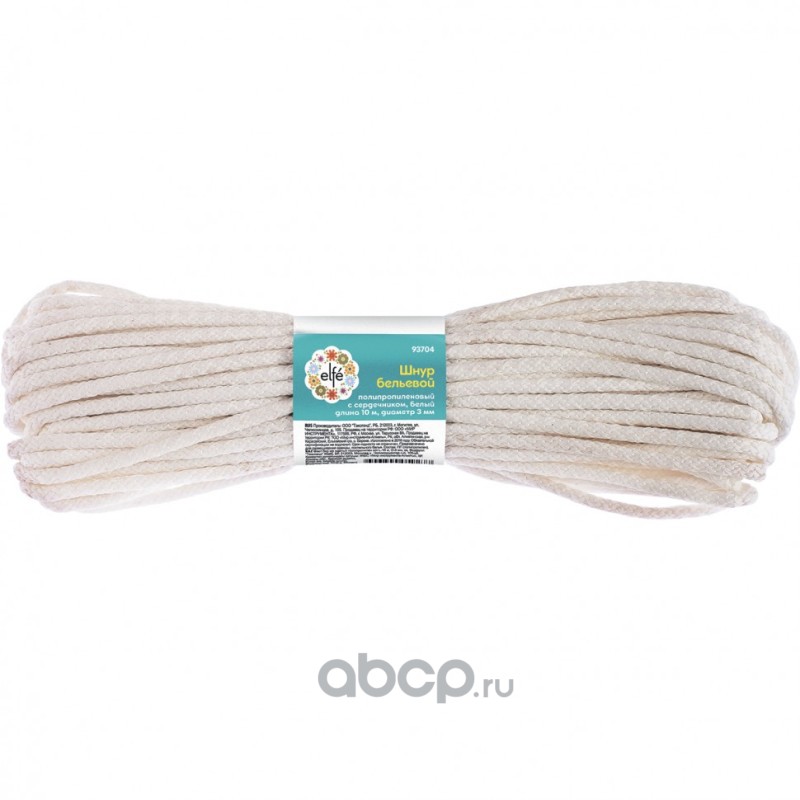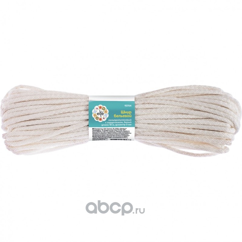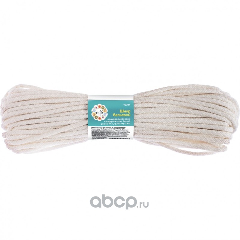 Шнур бельевой, полипропиленовый с сердечником D 3 мм, L-10 м, белый Elfe