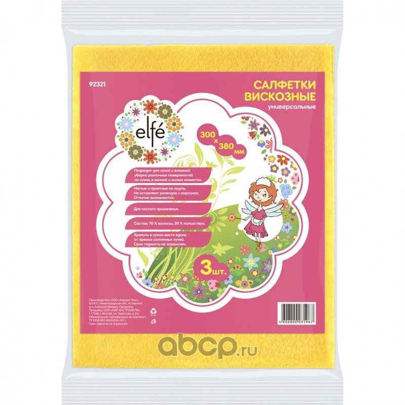 Салфетки вискозные универсальные 300 х 380 мм, 3 шт, Россия Elfe