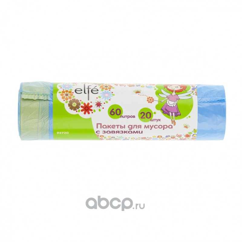 Пакеты для мусора с завязками 60 л х 20 шт, синие, Россия Elfe