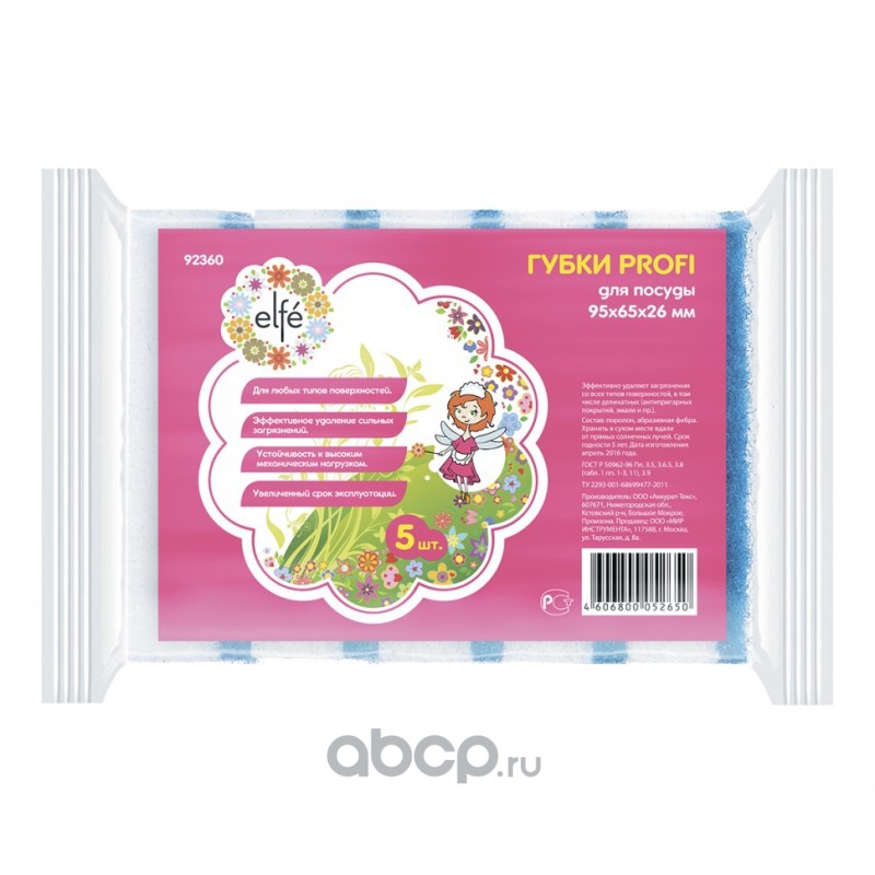 Губки для посуды ProFI, 95 х 65 х 26 мм, 5 шт, Россия Elfe