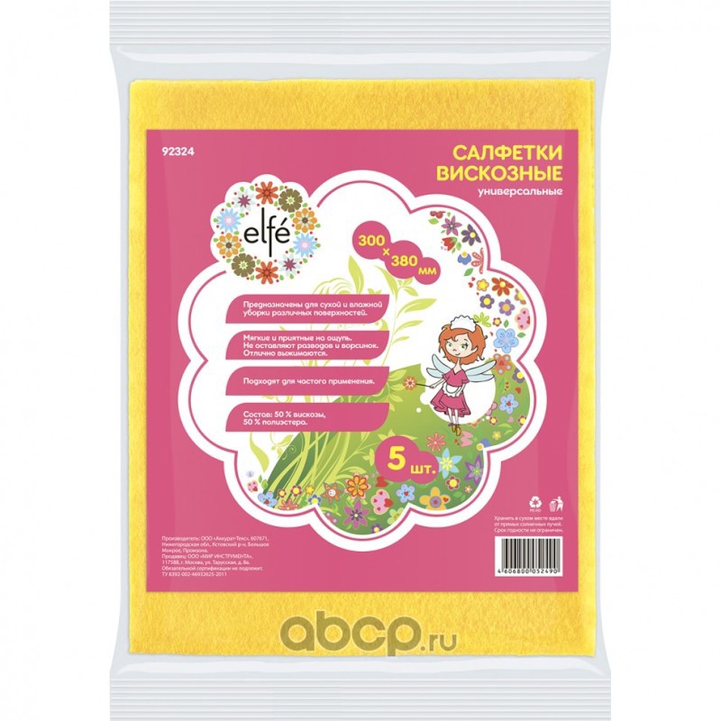 Салфетки вискозные универсальные 300 х 380 мм, 5 шт, Россия Elfe