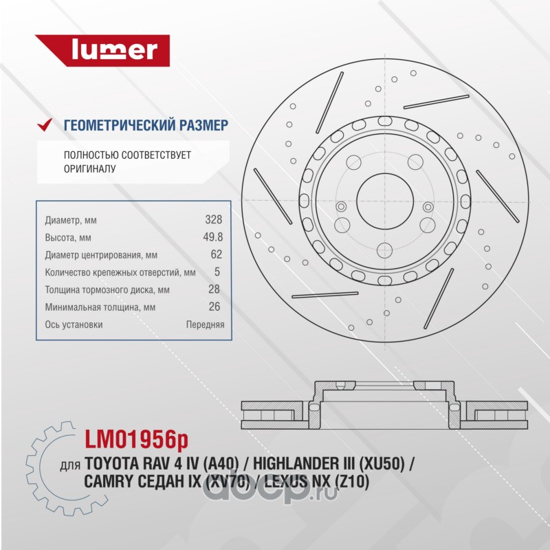 | lumer | LM01956P | Тормозной диск перфорированный передний Toyota Camry XV70 | ||