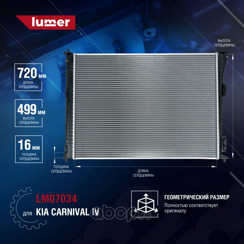 | lumer | LM07034 | Радиатор охлаждения двигателя Кia Сarnivаl 4 | ||