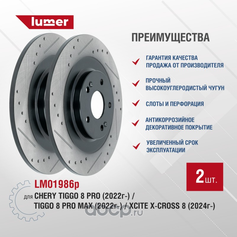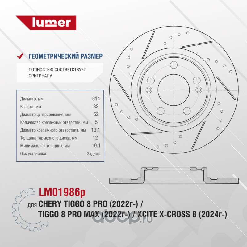 | lumer | LM01986P | Тормозной диск перфорированный задний CHERY Tiggo 8 Pro 22- | ||