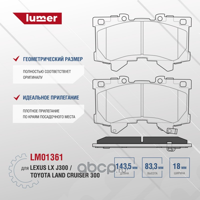 | lumer | LM01361 | Колодки тормозные передние дисковые TOYOTA Land Cruiser 300 / 4 Runner / Sequoia / Tacoma / Tundra / LEXUS GX LX | ||