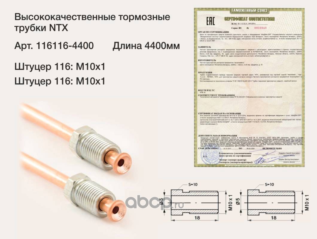 | ntx | 1161164400 | Трубка тормозная медная, штуцер М10х1/М10х1 L=4400мм (аналог WP-828) | ||