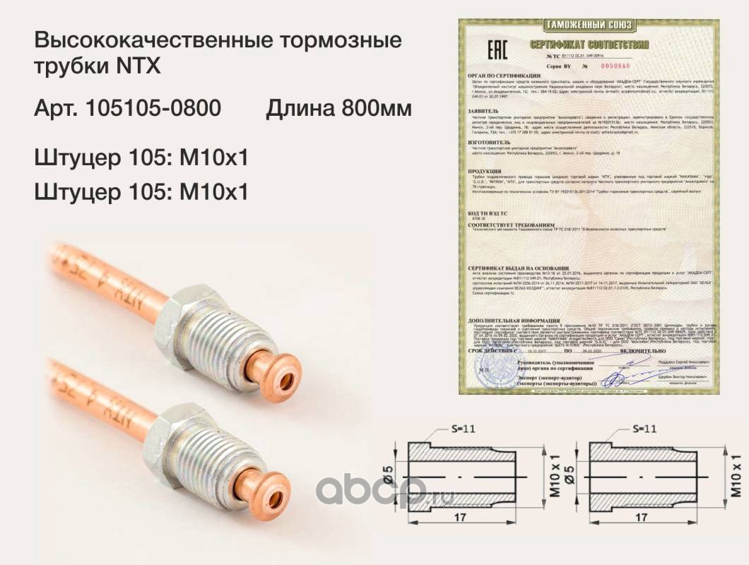 | ntx | 1051050800 | Трубка тормозная | ||
