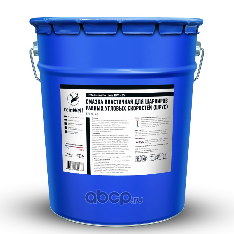 | reinWell | 3214 | l Смазка пластичная для шарниров равных угловых скоростей (ШРУС) RW-25 (17.5 кг) | ||